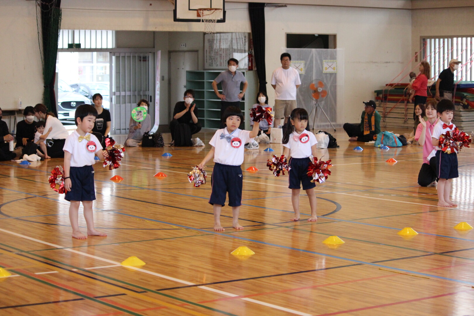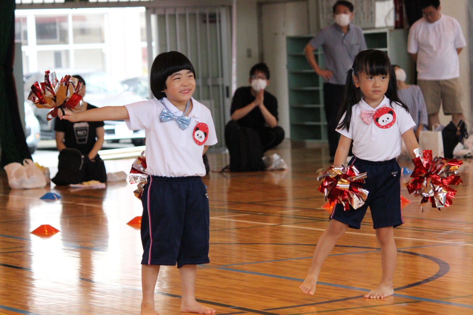 ぱんだ組のお友達は、かけっこではトラック一周を最後までがんばって走り、ゆうぎではポンポンを持ってかわいく踊りました♪
