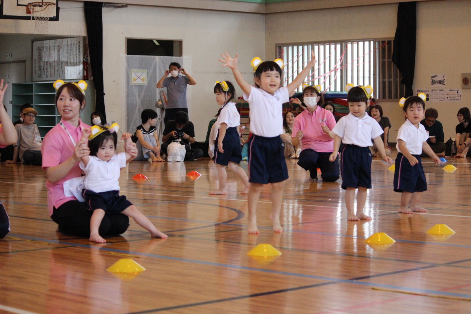 ひよこ組とりす組のお友達は少し涙も出ましたが、かけっこやお父さんお母さんと一緒にかわいいゆうぎをしました★