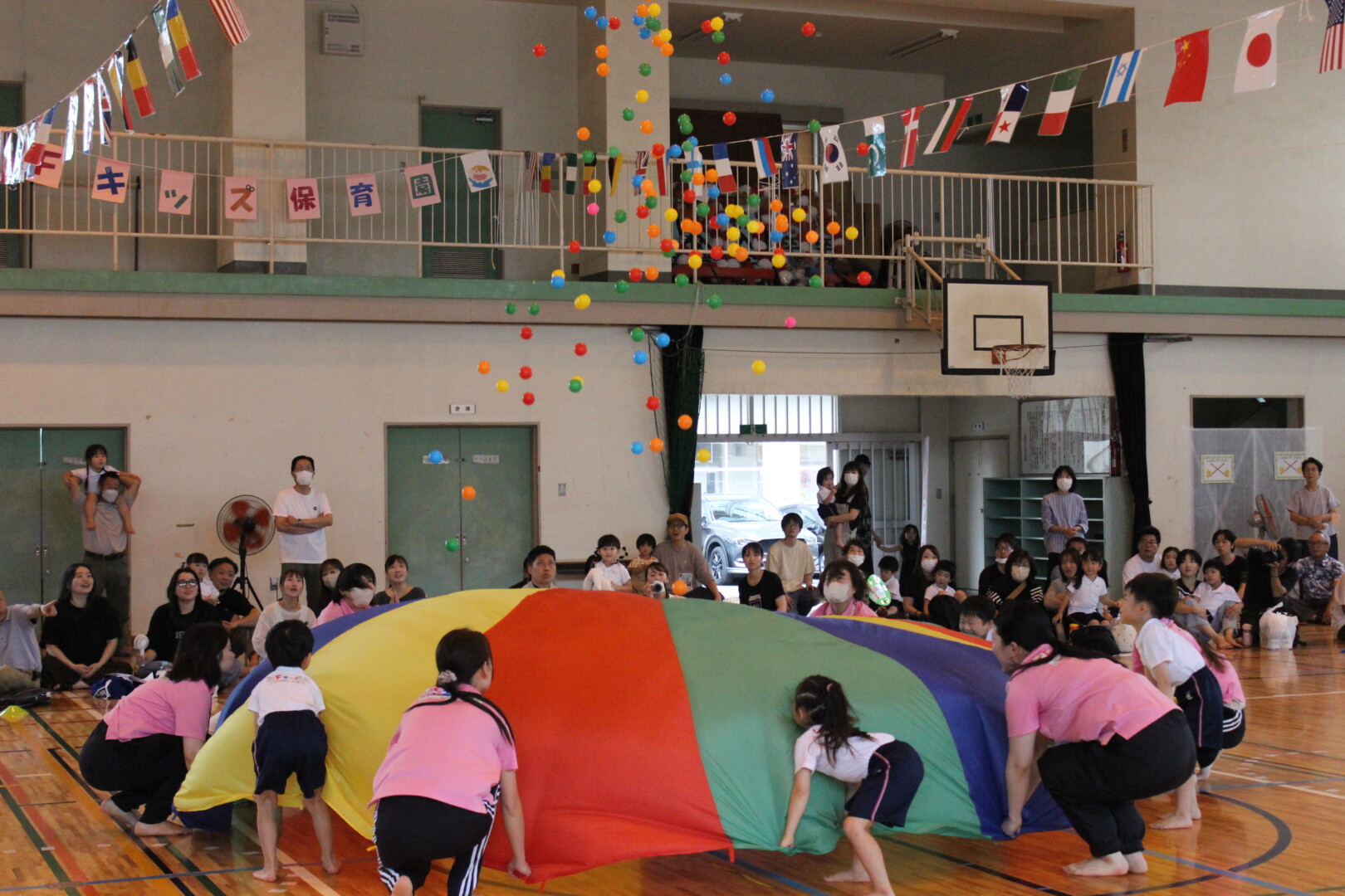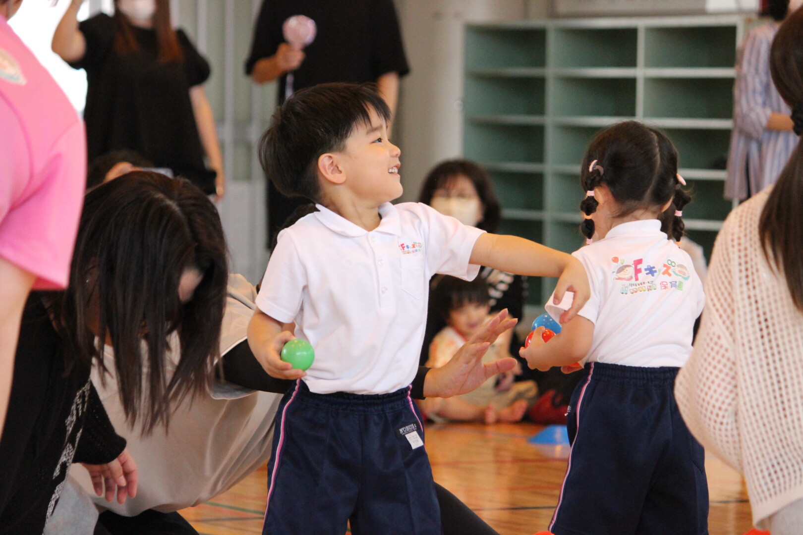 親子競技では、玉入れや二人三脚を保護者のみなさんと子ども達が力を合わせてがんばりました!