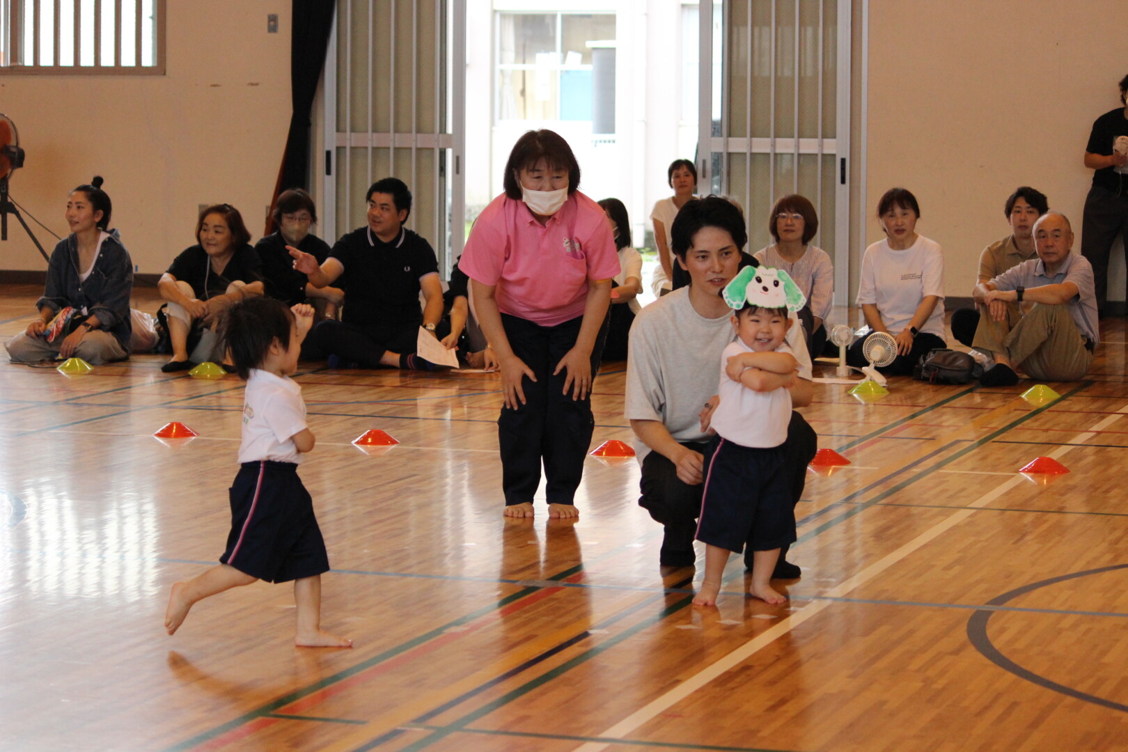 うさぎ組のお友達は、かけっこではトラック半周を観客に応援されながらがんばって走りました!