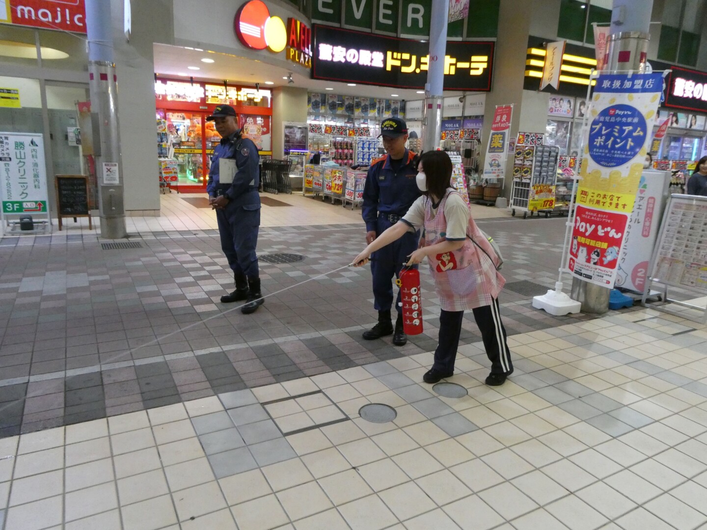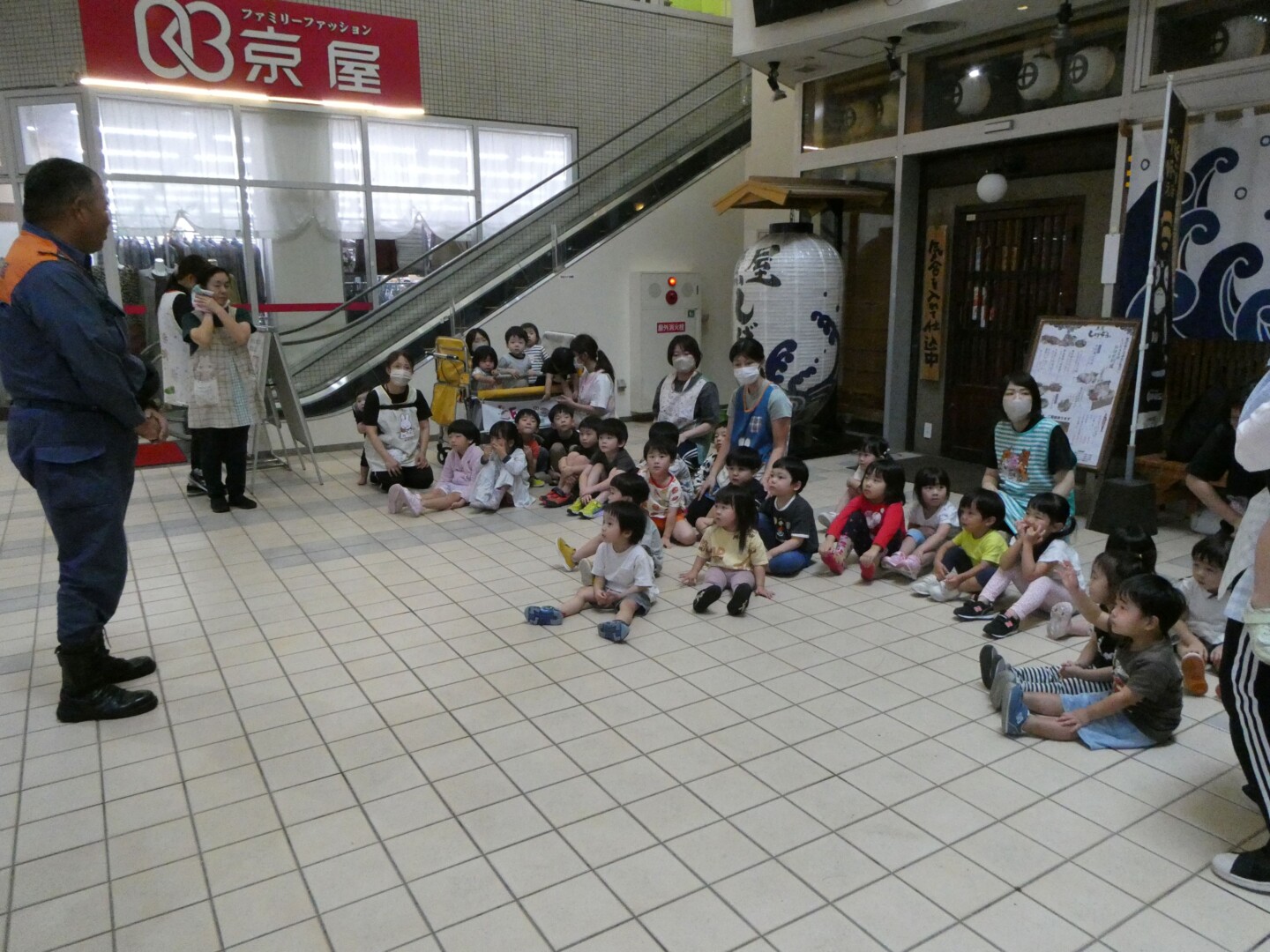 避難先では甲南分遣隊の方と、〝おかしも〟のお約束をし、職員による消火器の練習も集中して見ていました。