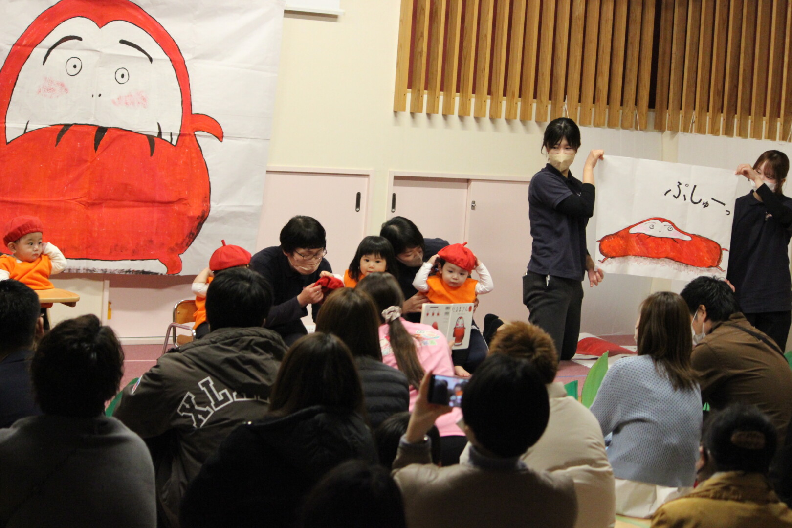 ひよこ組の〝かわいいひよこ組さん〟では、大好きな「トントンアンパンマン」を歌ったり、「だるまさんが」の絵本を楽しんだりしました!